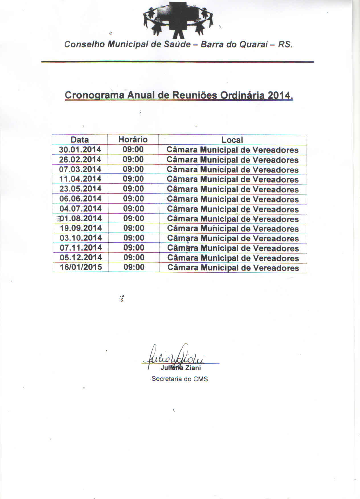 Cronograma Anual de Reuniões